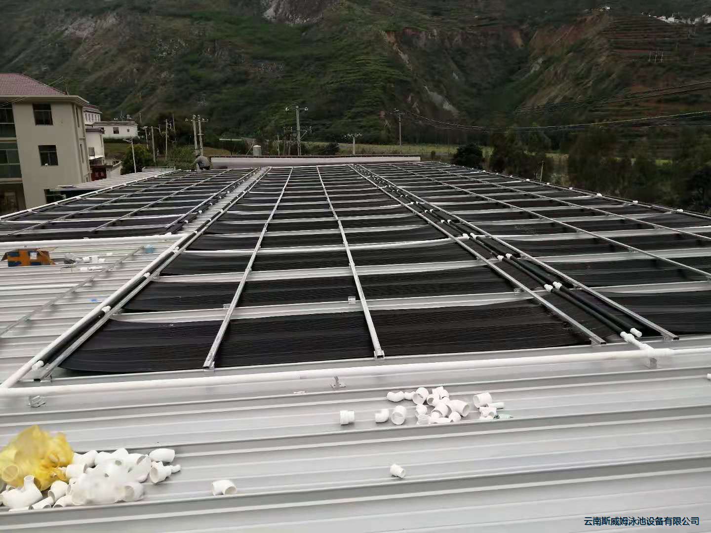 會(huì)所泳池做了水處理及空氣能加熱,后期加裝泳池專用太陽(yáng)能